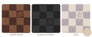Ternet mønster i flere udgaver: Ebene (brun), Azur (lys, 2006) og Graphite (sort/grå, 2008). Der findes også limited editions som Damier Cobalt.