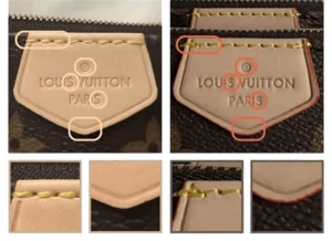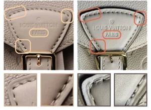 • Præg/tryk “Louis Vuitton Paris” skal være skarpt og jævnt: