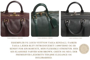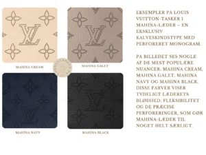 Louis Vuitton anvender både canvas og forskellige typer læder i deres kollektioner. Her gennemgår vi de mest kendte materialer og deres kendetegn.