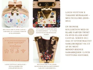 Et samarbejde mellem Louis Vuitton og kunstneren Takashi Murakami. 33 forskellige farver trykt på hvid eller sort canvas. Serien er i dag eftertragtet blandt samlere.