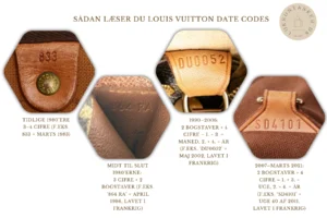 Læs vores artikel med autentiske eksempler på varmestempler, datokoder og ‘‘Made in U.S.A. of imported materials’’-mærkater – blandt andet på modeller som Neverfull, Speedy og Pochette Métis.